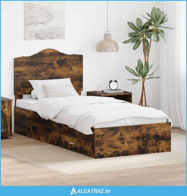 Krevetna konstrukcija s uzglavljem Dimljeni hrast 90 x 190 cm - NOVO