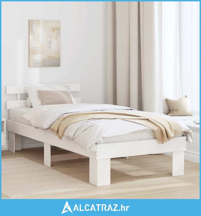 Krevetni okvir s naslonjačem Bijeli 90x200 cm Masivna borovina - NOVO