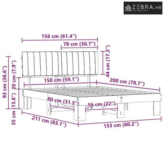 Uključene komponente: Ovaj okvir kreveta dolazi s tapeciranim uzglavljem koje povećava vizualnu privlačnost i udobnost. Pjena u uzglavlju nudi mekano mjesto za odmaranje, poboljšavajući kvalitetu spavanja. Ova promišljena značajka osigurava udobnost i stil svake noći.