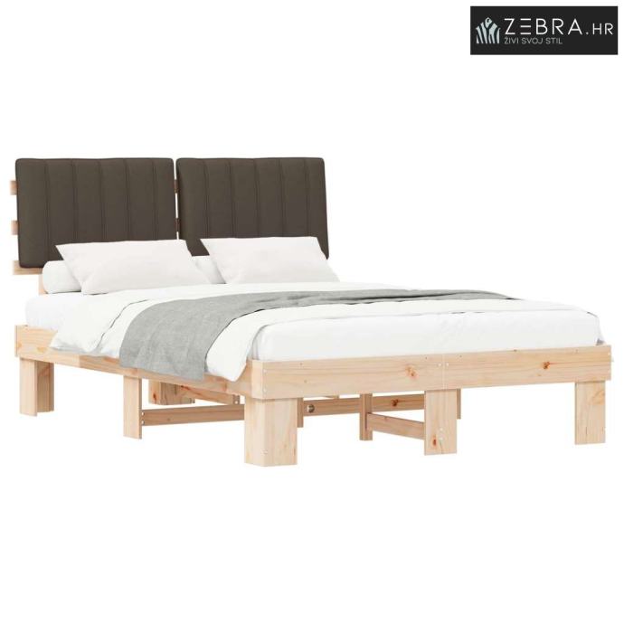 Materijali: Okvir kreveta spravljen je od masivne borovine, poznate po snazi i prirodnoj ljepoti. Ovaj materijal osigurava pouzdanu podršku i unosi toplinu u svaku spavaću sobu. Savršeno je rješenje za one koji žele spoj stila i čvrstoće. Uključene komponente: Ovaj okvir kreveta dolazi s tapeciranim uzglavljem koje povećava vizualnu privlačnost i udobnost. Pjena u uzglavlju nudi mekano mjesto za odmaranje, poboljšavajući kvalitetu spavanja. Ova promišljena značajka osigurava udobnost i stil svake noći. Funkcionalne značajke: Platforma s letvičastim okvirom pruža stabilnu podršku madracu bez potrebe za podnicom. Ovaj dizajn osigurava optimalnu raspodjelu težine, povećava trajnost madraca i omogućava miran san. Idealan je za suvremena rješenja za nisko profilirane krevete. Preporučena upotreba: Savršen je za unutarnje prostore, posebno u spavaćim sobama. Ovaj okvir dodaje stil raznim temama dekora, a njegov nenametljiv izgled čini ga savršenim za urbane stanove, kuće ili gostinjske sobe, udovoljavajući potrebama suvremenog načina života. Njega i održavanje: Održavajte okvir čistim brisanjem vlažnom krpom. Ova jednostavna rutina osigurava dugovječnost i očuvanje njegovog izgleda. Lako održavanje znači više vremena za uživanje u mirnom prostoru za spavanje. Boja: Sivo-smeđa