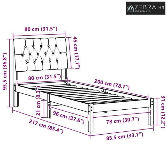 Veličina madraca: Mali jednostruki (80 cm x 200 cm / 31" x 79")