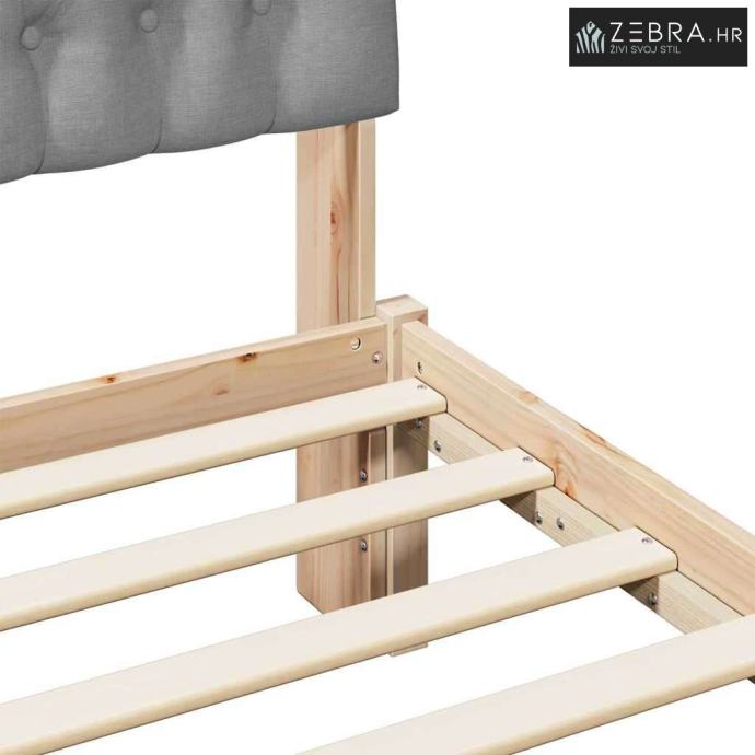 Materijali i završna obrada: Okvir kreveta je od masivnog bora, što mu daje dugotrajnost i čvrstoću. Lakirana površina dodatno ga štiti i naglašava prirodnu ljepotu drveta. Ovaj odabir poboljšava izgled kreveta, nudeći bezvremenski i svestran stil koji lako pristaje raznim interijerima.