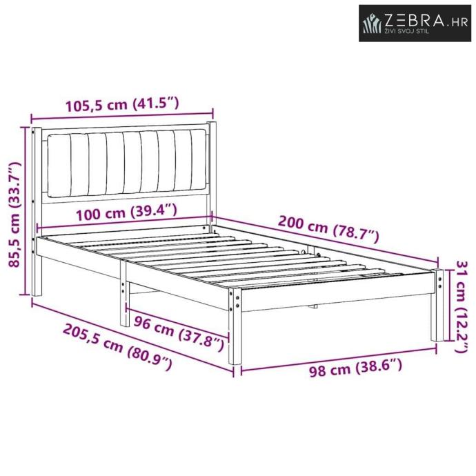 Čvrsti okvir od borovine Izrađen od jakog borovog drva, ovaj okvir pruža stabilnost i dugovječnost. Ovaj materijal jamči pouzdanu konstrukciju koja podnosi svakodnevno korištenje, a prirodna otpornost bora čini ga idealnim za spavaću sobu.