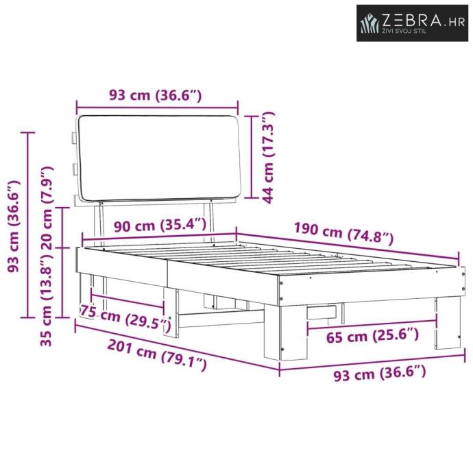 Veličina madraca: Kratki jednostruki (90 cm x 190 cm / 35" x 75")