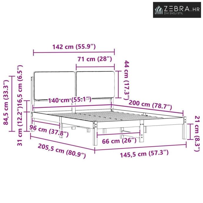 Izrada od čvrstog borovog drveta: Okvir kreveta je izrađen od vrhunskog borovog drveta, što osigurava dugotrajnost i robusnu podršku. Njegova prirodna ljepota donosi toplinu svim spavaćim sobama.