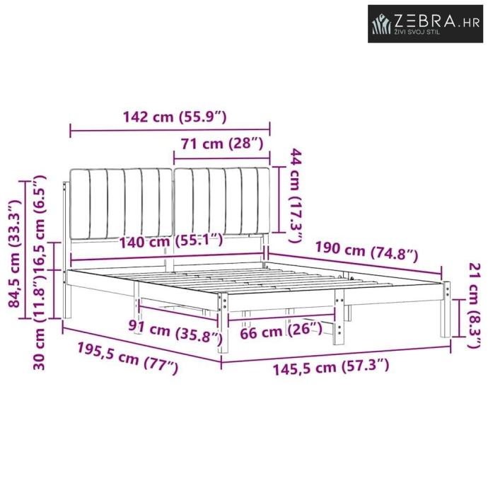 Veličina madraca: Kratki dvostruki (140 cm x 190 cm / 55" x 75")
