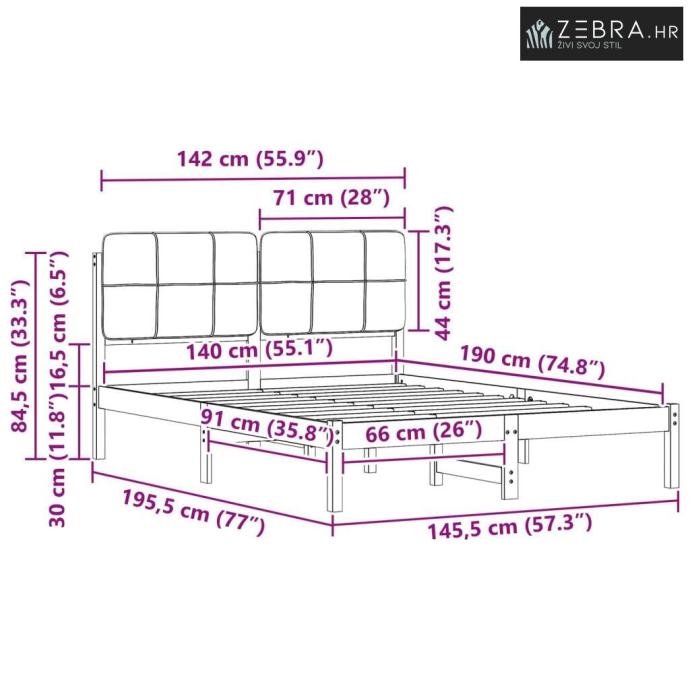 Platformski letvičasti okvir: Krevet je opremljen platformom koja pruža stabilnu podršku madracima. Masivne letvice eliminiraju potrebu za boxspringom, olakšavajući postupak postavljanja kreveta i održavanja.