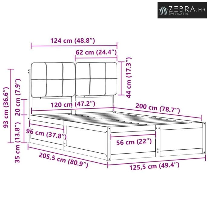 Elegantno tapacirano uzglavlje: Uzglavlje je obloženo pjenom, pružajući udobnost dok čitate ili se opuštate. Uklonjivi pokrivač olakšava održavanje.