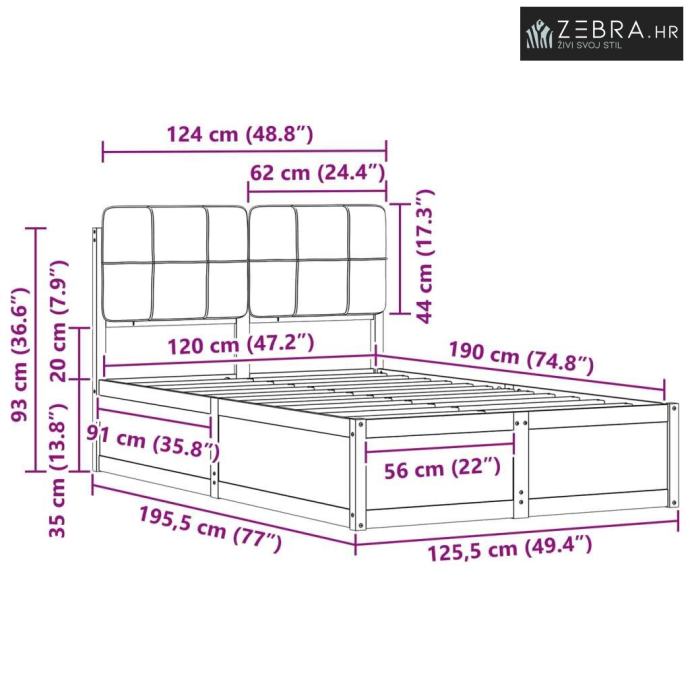 Elegantno tapacirano uzglavlje: Uzglavlje je obloženo pjenom, pružajući udobnost dok čitate ili se opuštate. Uklonjivi pokrivač olakšava održavanje.