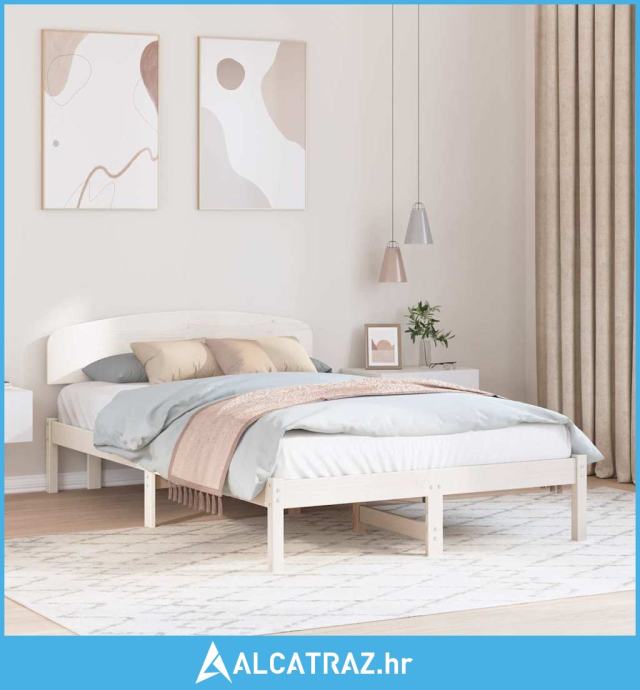 Krevetni okvir s uzglavljem beli 120x200 cm od masivnog drva borovine