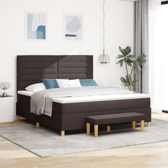 Kutna kreveta s madracem i klupom tamnosmeđa 180x200 cm tkanina