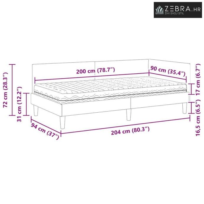 1 x Kutni okvir kreveta: 204 x 94 x 72cm (DxŠxV)