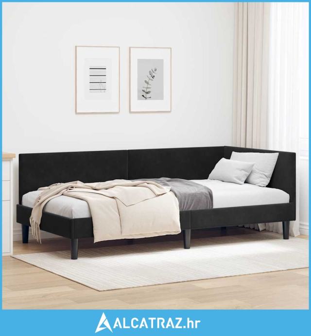 Kutni okvir kreveta Crna 90 x 190 cm Velvet i inženjerski drvo - NOVO