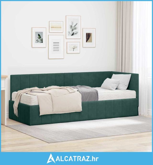 Kutni okvir kreveta s madracem Tamnozelena 80 x 200 cm Baršun - NOVO