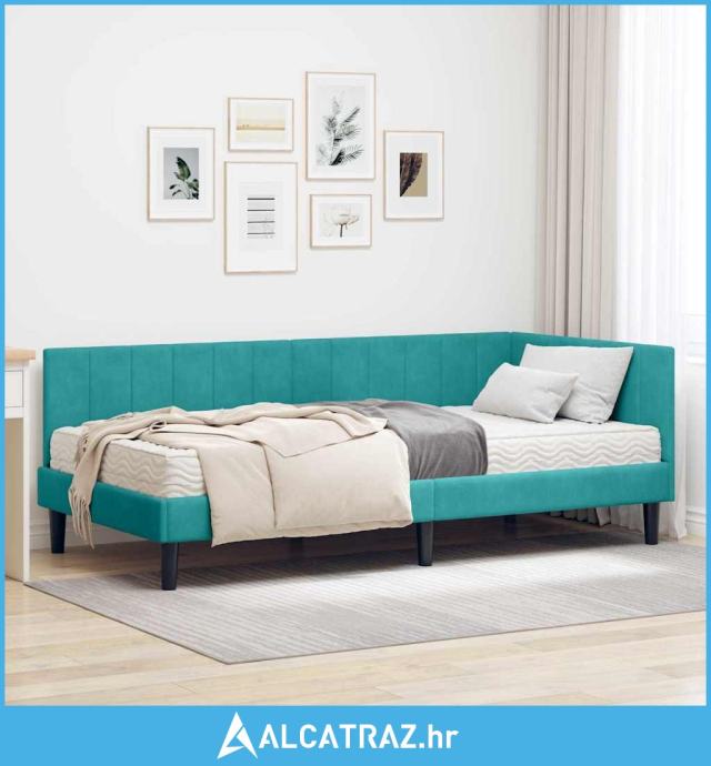 Kutni okvir kreveta s madracem Tirkizna 100 x 200 cm Baršun - NOVO