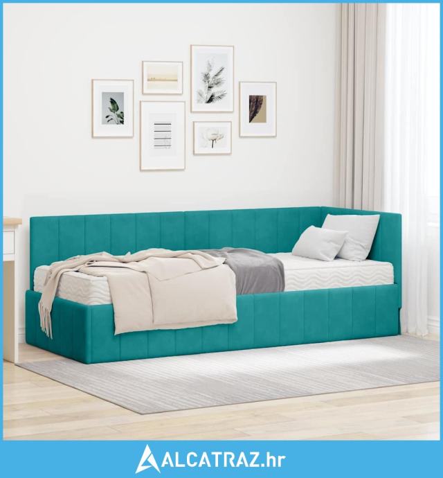 Kutni okvir kreveta s madracem Tirkizna 80 x 200 cm Baršun - NOVO