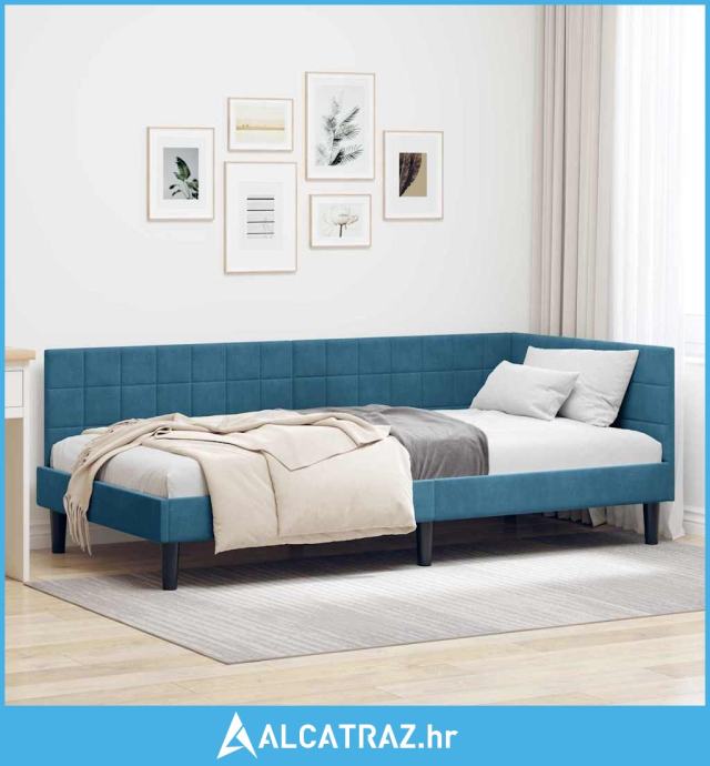 Kutni okvir kreveta s uzglavljem Plava 100 x 200 cm Baršun - NOVO