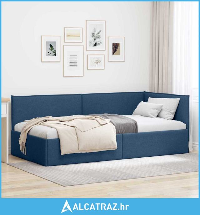 Kutni okvir kreveta s uzglavljem Plava 90 x 200 cm tkanina - NOVO