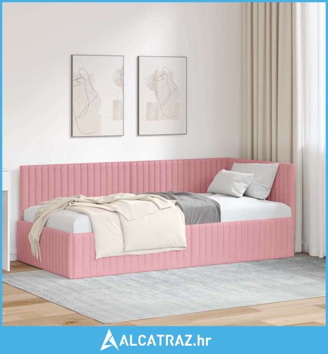 Kutni okvir kreveta s uzglavljem Ružičasta 90 x 190 cm Baršun - NOVO