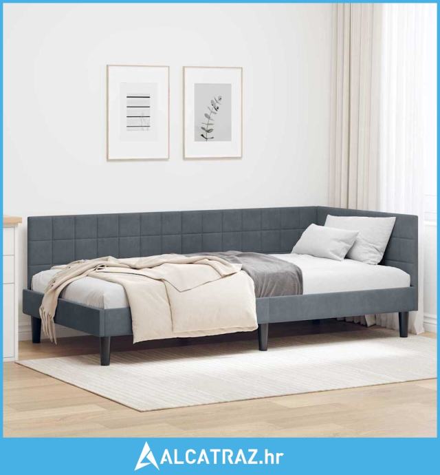 Kutni okvir kreveta s uzglavljem Tamno siva 90 x 190 cm Baršun - NOVO