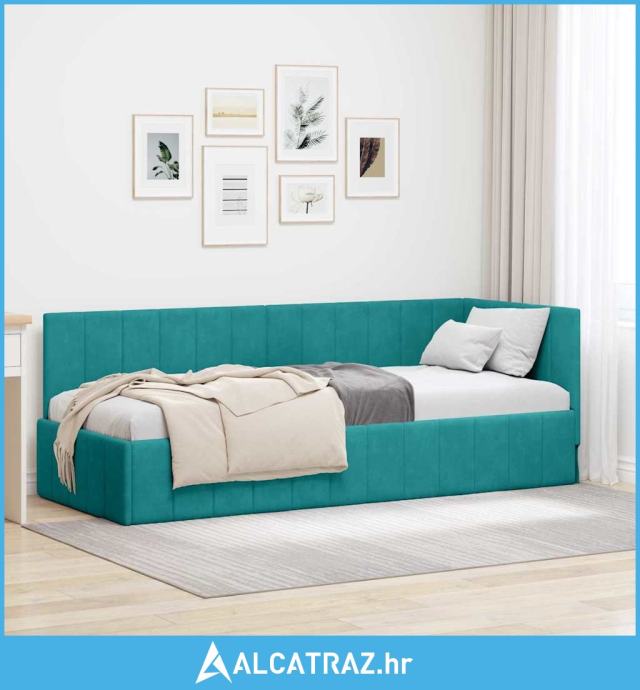 Kutni okvir kreveta s uzglavljem Tirkizna 80 x 200 cm Baršun - NOVO