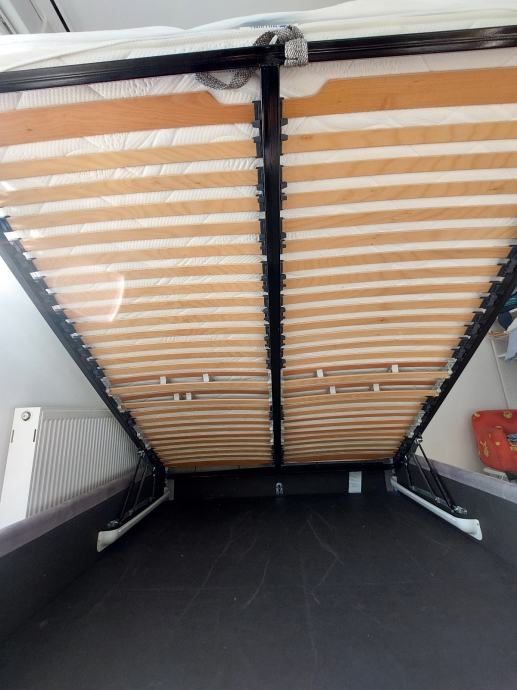 Prodajem kvalitetni bračni krevet s podiznom podnicom za madrac dimenzija 160x200. Okvir kreveta je kompletno presvučen kvalitetnim materijalom koji je vrlo jednostavan za održavanje. U izvrsnom stanju bez oštećenja, čvrst i stabilan. Krevet ima veliki prostor za pohranu. Kupljen u Harvey Normanu.