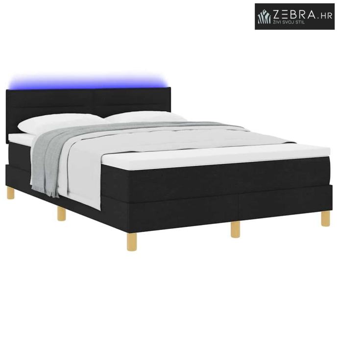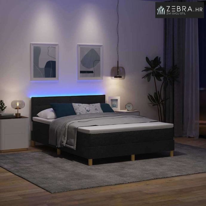 LED Box Spring Krevet s LED trakama Crna 160 x 200 cm tkanina