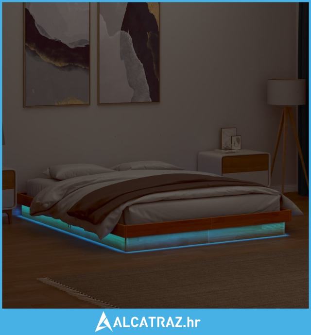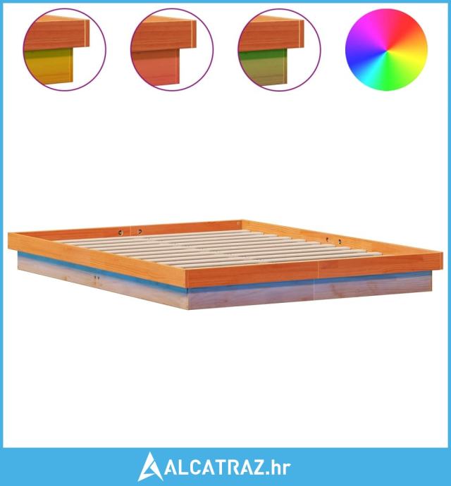 LED okvir kreveta voštano smeđi 150x200 cm od masivne borovine - NOVO