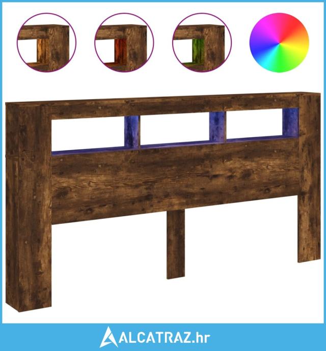 LED uzglavlje boja dimljenog hrasta 200x18,5x103,5 cm drveno - NOVO