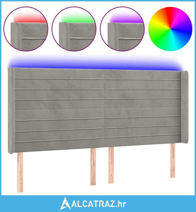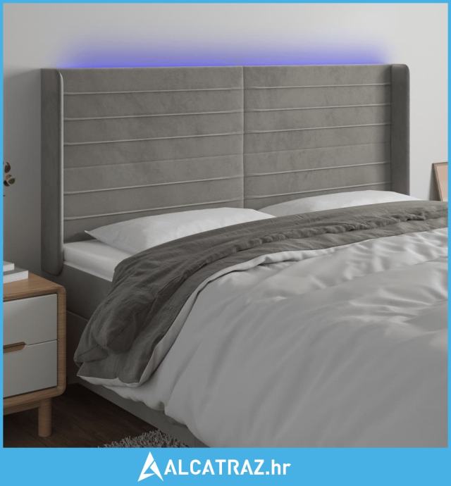 LED uzglavlje svjetlosivo 163 x 16 x 118/128 cm baršunasto - NOVO