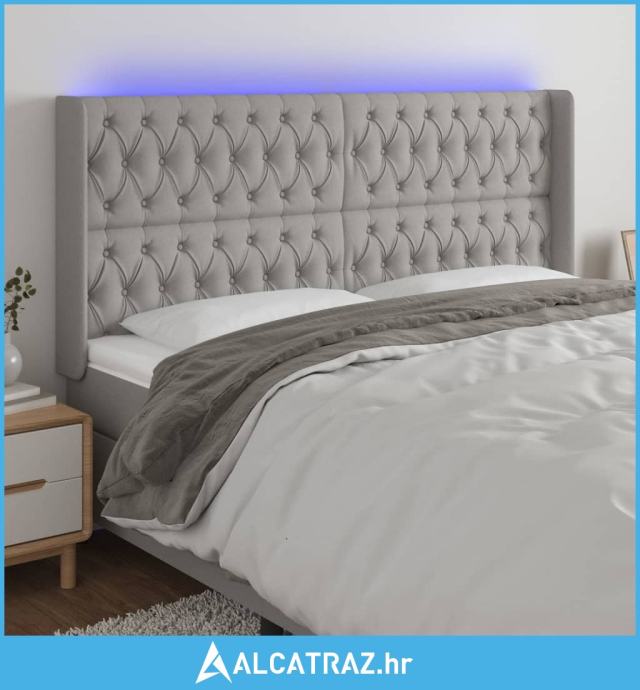 LED uzglavlje svjetlosivo 183 x 16 x 118/128 cm od tkanine - NOVO