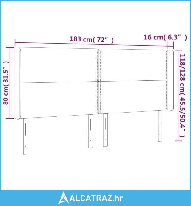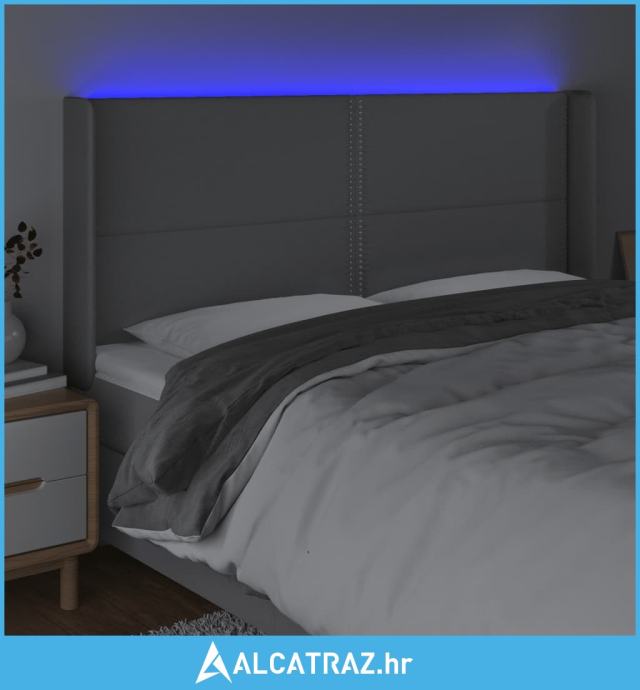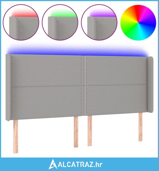LED uzglavlje svjetlosivo 183 x 16 x 118/128 cm od tkanine - NOVO