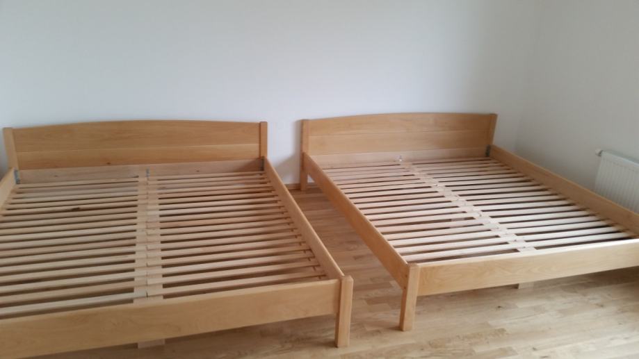 KREVETI 200/190 X 180/160/140/120 NOVI,RUČNI RAD,OD PARENE BUKVE,LAKIRANI,JEDNOSTAVNI ZA MONTAŽU,SA METALNIM KUTNICIMA NA STRANICAMA
