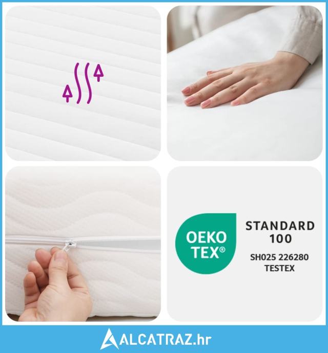- Prozračna navlaka: Ova navlaka za madrac napravljena je od udobne i prozračne pletene tkanine koja osigurava dobru regulaciju vlage i cirkulaciju zraka.