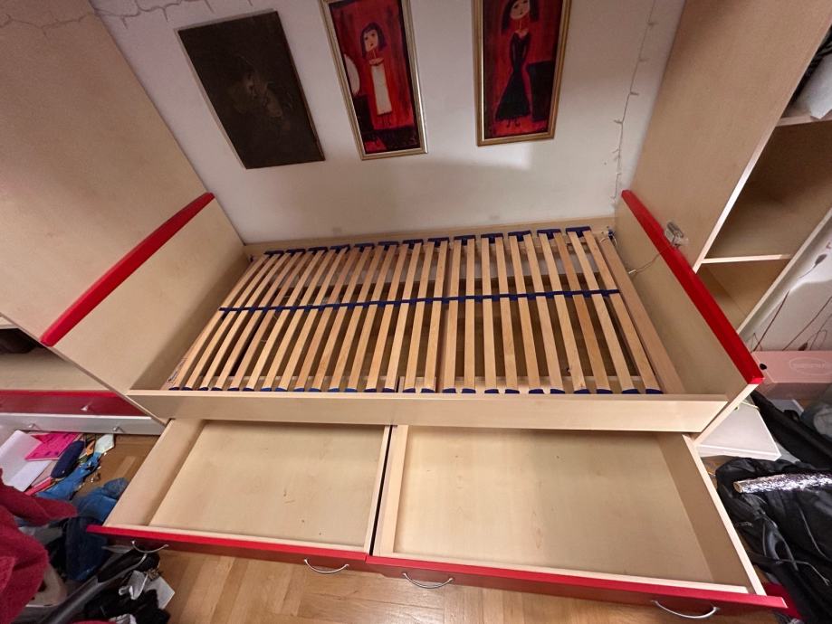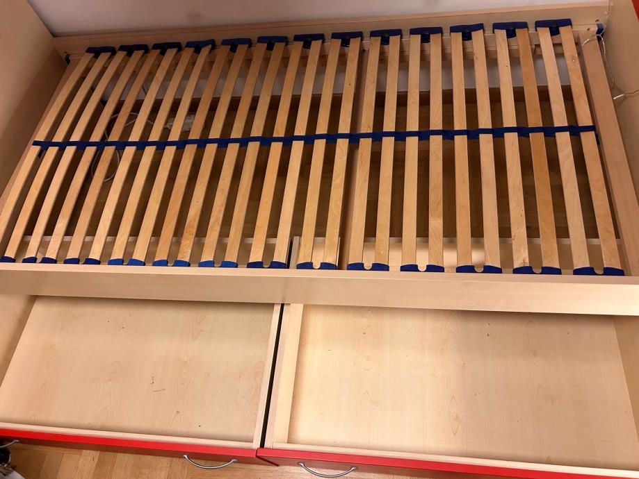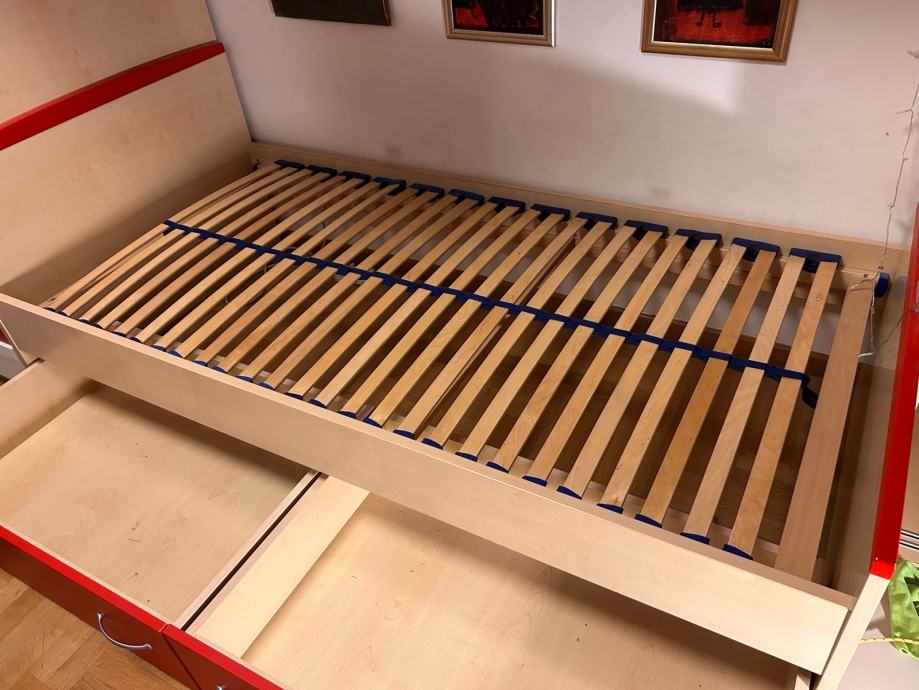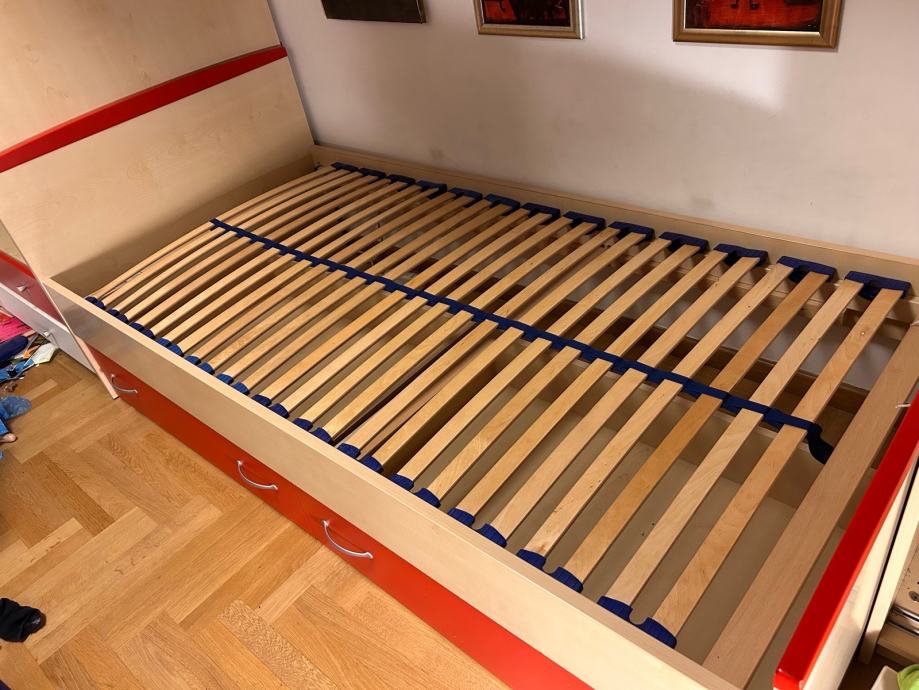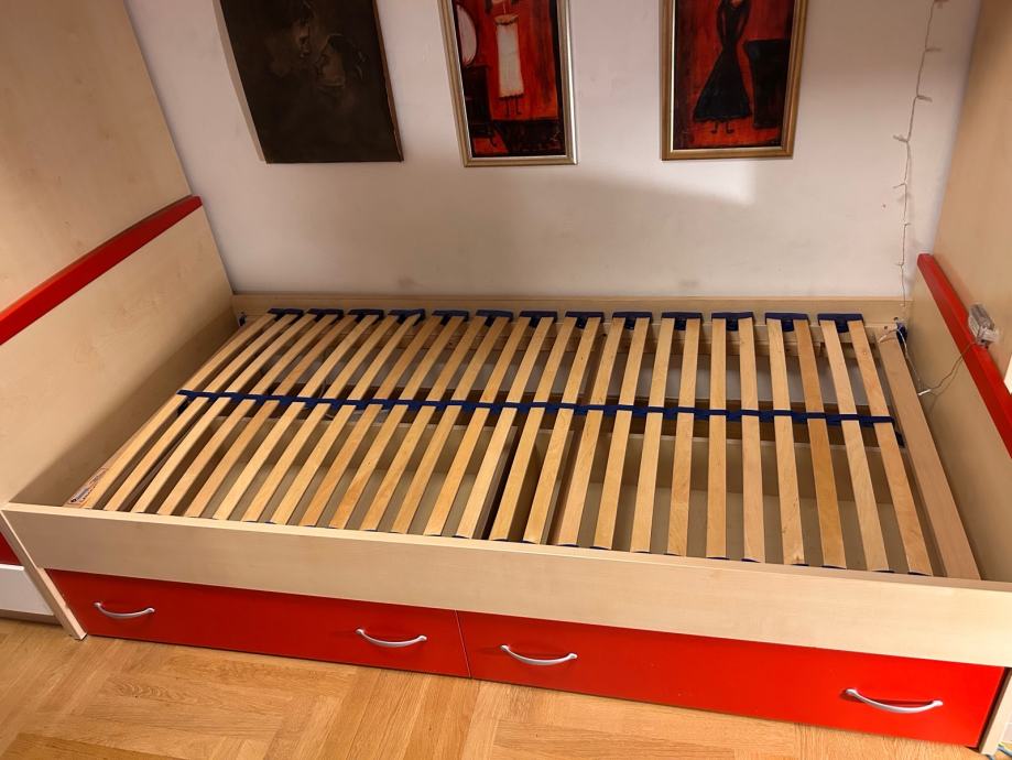 Krevet je dimenzija 90x200 s dvije ladice na razvlacenje te s podnicom.