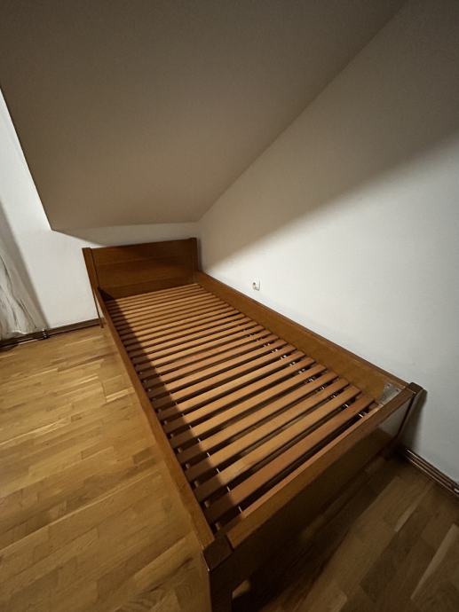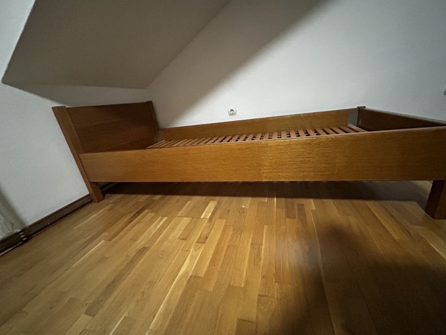 Vrlo kvalitetan i čvrst krevet od punog hrasta. Odlično očuvan, bez klimanja. U cijeni je i kvalitetna podnica.