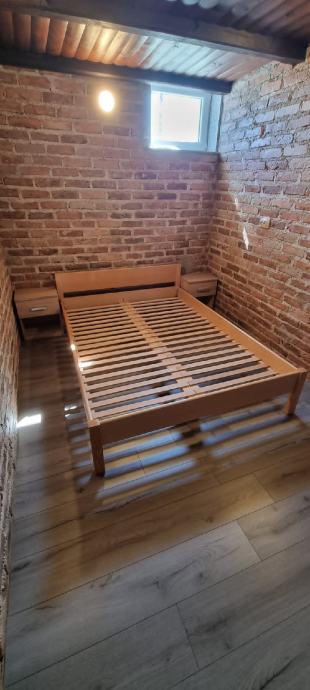 KREVETI 200/190 X 180/160/140/120 NOVI,RUČNI RAD,OD PARENE BUKVE,LAKIRANI,JEDNOSTAVNI ZA MONTAŽU,SA METALNIM KUTNICIMA NA STRANICAMA