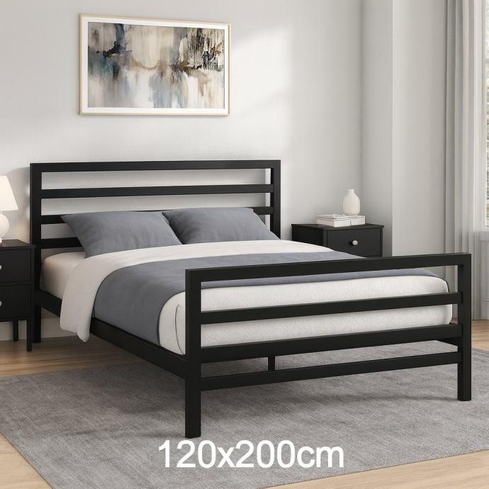 Moderan crni metalni krevet odlikuje se jednostavnim, ali elegantnim dizajnom, savršenim za svaku spavaću sobu. Iznimne je čvrstoće i izdržljivosti, s potpuno varenim podnicama i stranicama. Savršen izbor za ljubitelje minimalističkog stila i praktičnosti