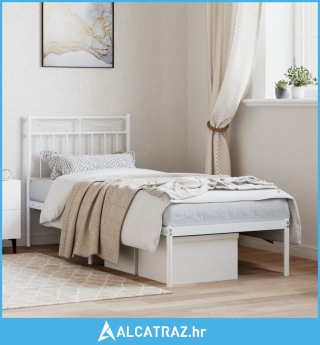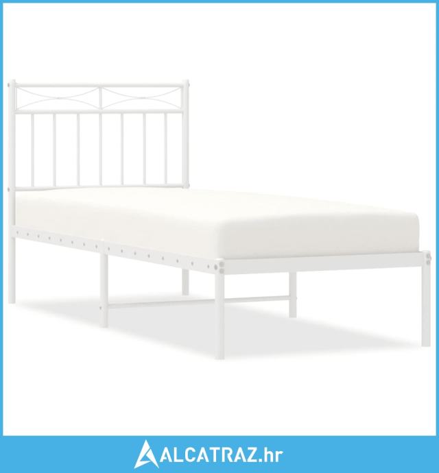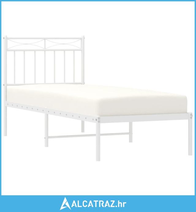 Metalni okvir krevet bez madraca s uzglavljem bijeli 75x190 cm - NOVO