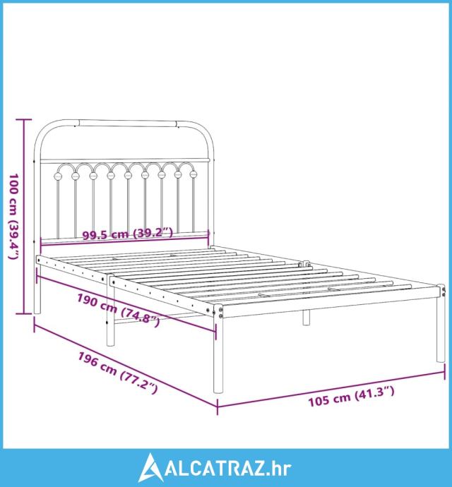 - Ukupne dimenzije kreveta: 196 x 105 x 100 cm (D x Š x V)