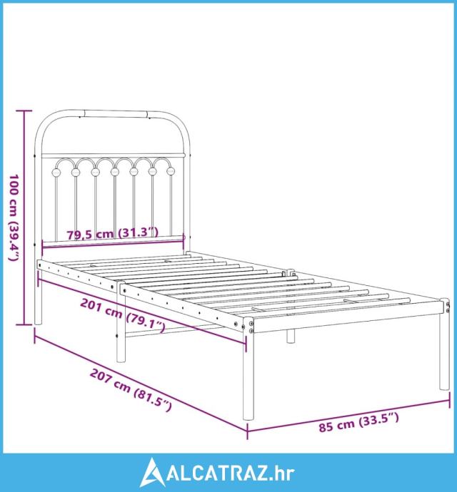 - Ukupne dimenzije kreveta: 207 x 85 x 100 cm (D x Š x V)