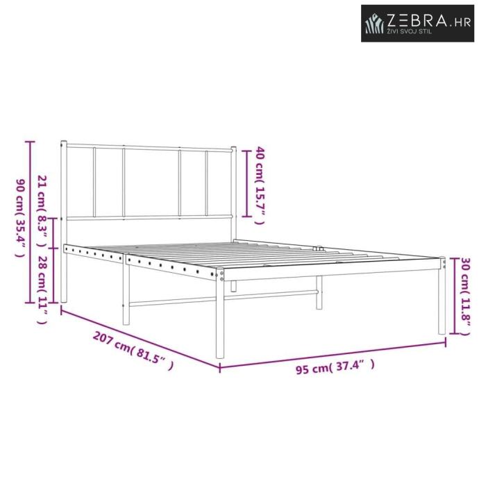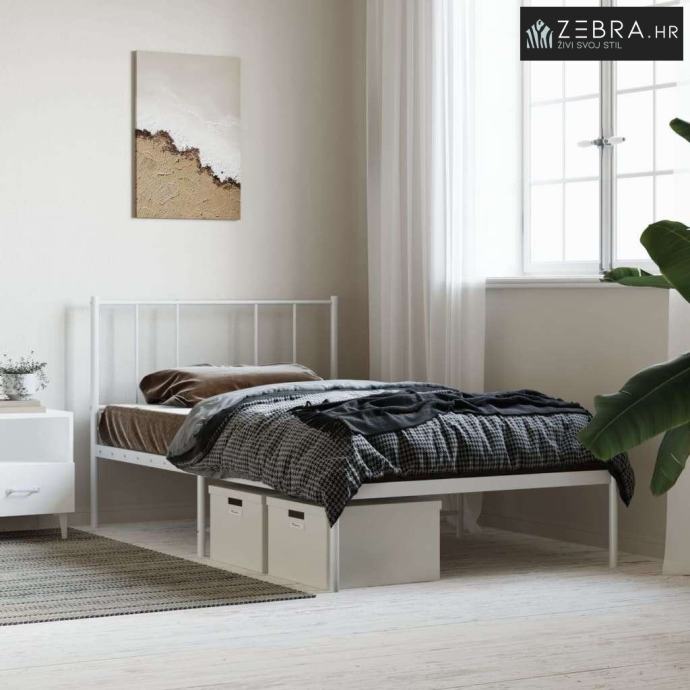 Metalni okvir za krevet s uzglavljem bijeli 90x200 cm - Bijela 90 x 20