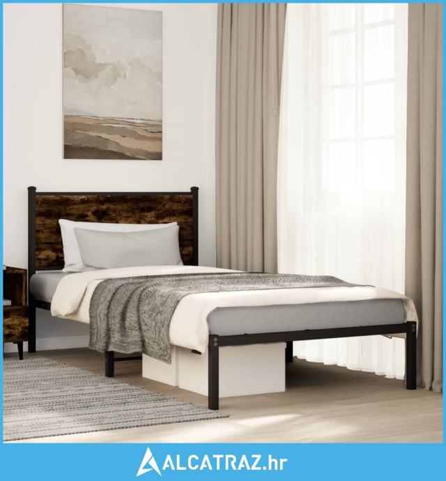 Metalni okvir krevet uzglavljem boja dimljenog hrasta 100x200cm - NOVO