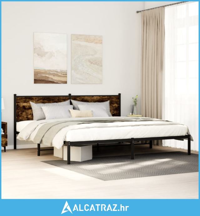 Metalni okvir krevet uzglavljem boja dimljenog hrasta 193x203cm - NOVO