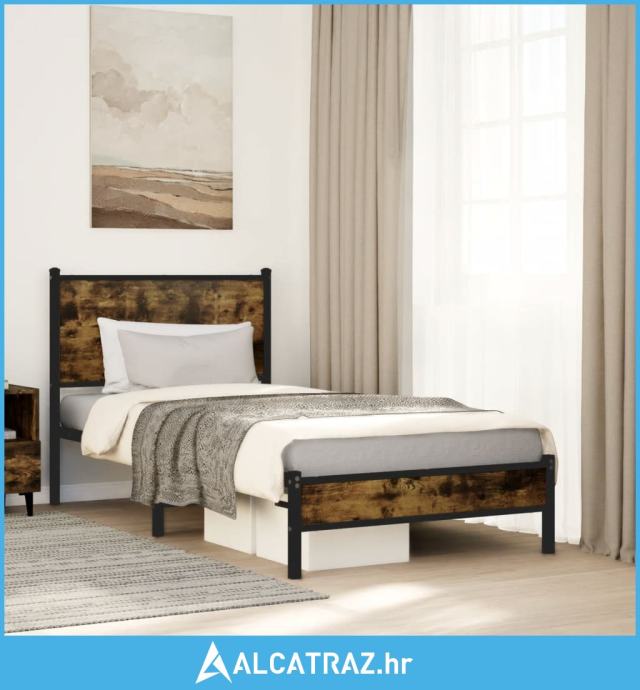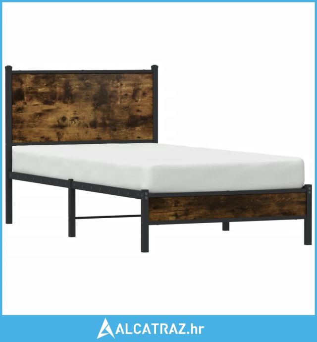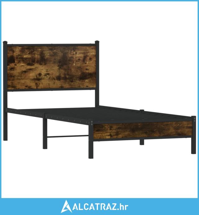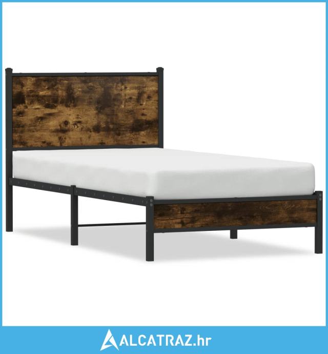 Metalni okvir krevet uzglavljem boja dimljenog hrasta 75x190 cm - NOVO