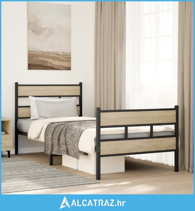 Metalni okvir kreveta bez madraca boja hrasta sonome 107x203 cm - NOVO