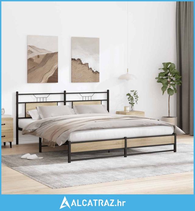 Metalni okvir kreveta bez madraca boja hrasta sonome 183x213 cm - NOVO