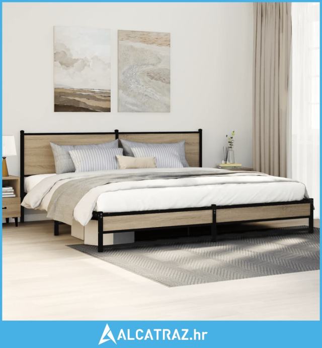 Metalni okvir kreveta bez madraca boja hrasta sonome 193x203 cm - NOVO