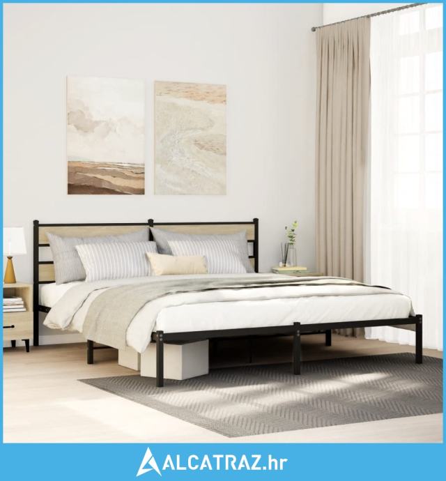 Metalni okvir kreveta bez madraca boja hrasta sonome 193x203 cm - NOVO