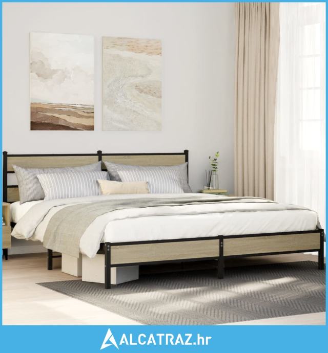 Metalni okvir kreveta bez madraca boja hrasta sonome 193x203 cm - NOVO